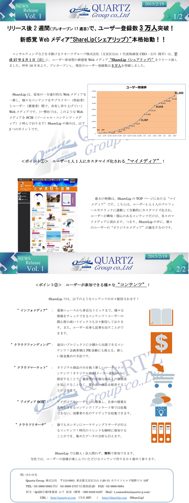 | 2015年2月 | ソーシャルコンテンツメディア”ShareLip”の運営を開始 |